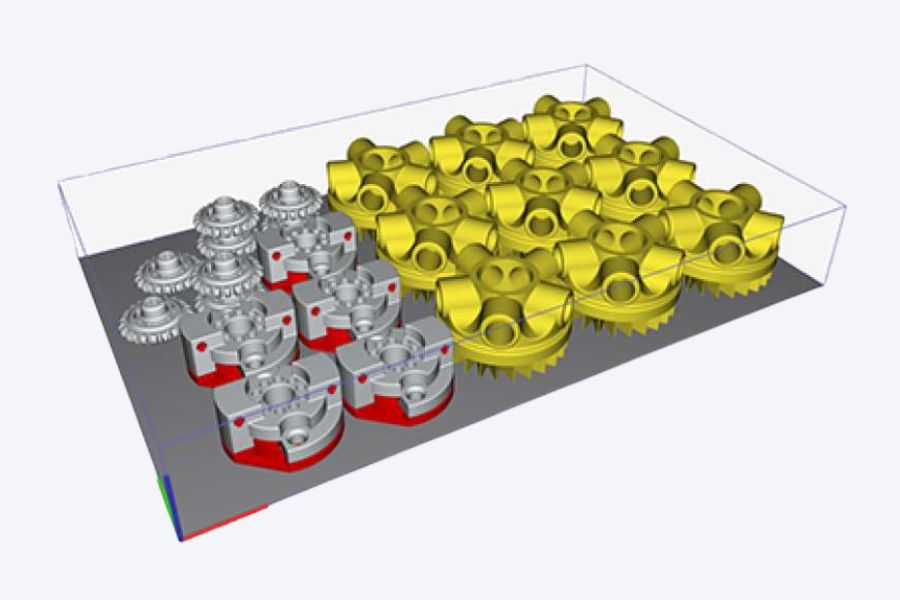 Binder Jetting'in üretim esnekliğinden yararlanın. Çeşitli parçaları aynı yapım işine istifleyerek ekleyebilir veya başarılı baskı ve sinterleme için tüm üretim parçalarını yoğun bir pakete verimli bir şekilde yerleştirebilirsiniz.