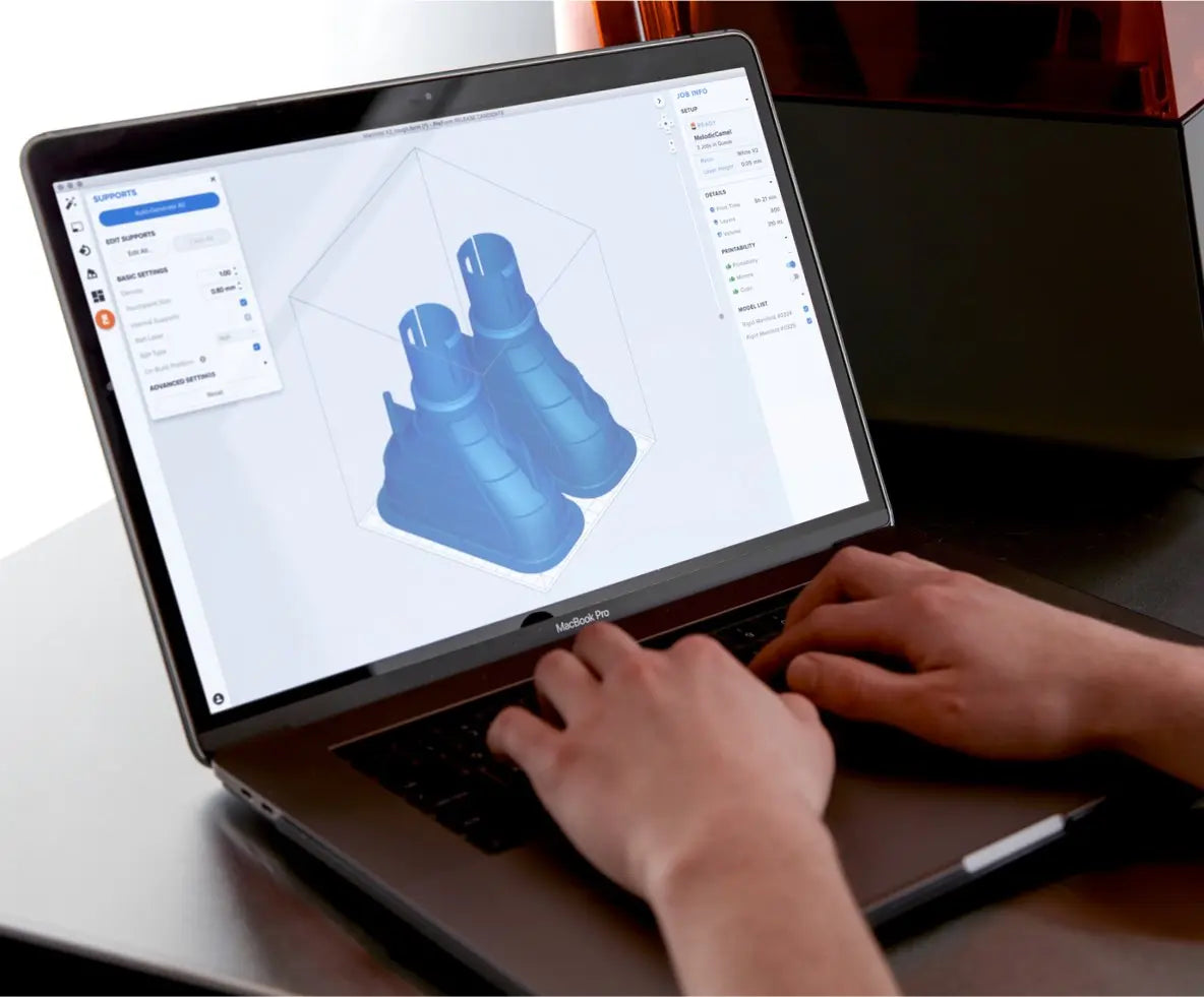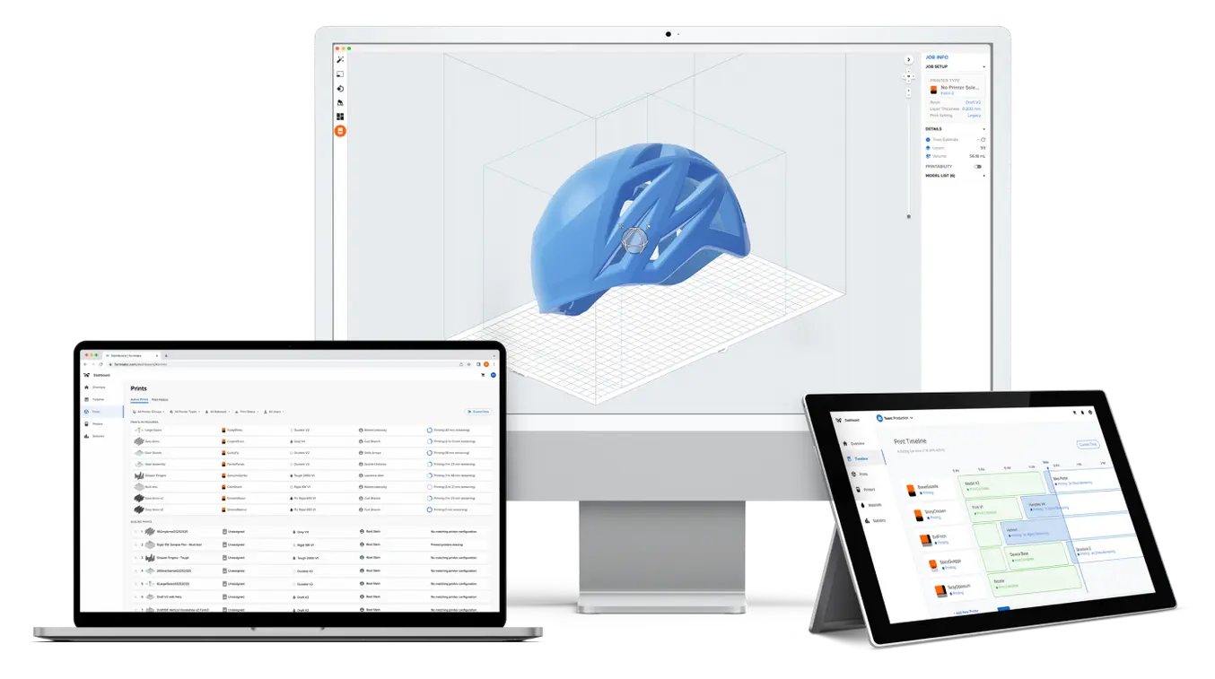 Formlabs yazılım çözümleri, daha verimli çalışmanıza yardımcı olur. 3D modellerinizi yalnızca birkaç tıklamayla baskıya hazırlayın, tek bir yazıcıyı ya da tüm yazıcı filonuzu bulut üzerinden yönetin, iş akışınızı otomatikleştirerek optimize edin.
